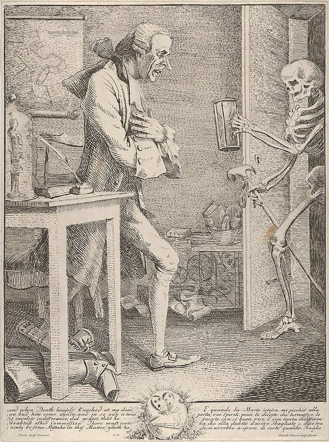 Were I in a condition to stipulate with death . . . I should certainly declare against submitting to it before my friends; and therefore . . . wish that it happen not to me in my own house——but rather in some decent inn——at home I know it,——the concern of my friends, and the last services of wiping my brows and smoothing my pillow, which the quivering hand of pale affection shall pay me, will not so crucify my soul, that I shall die of a distemper which my physician is not aware of: but in an inn, the few cold offices I wanted, would be purchased with a few guineas, and paid me with an undisturbed, but punctual attention——.
