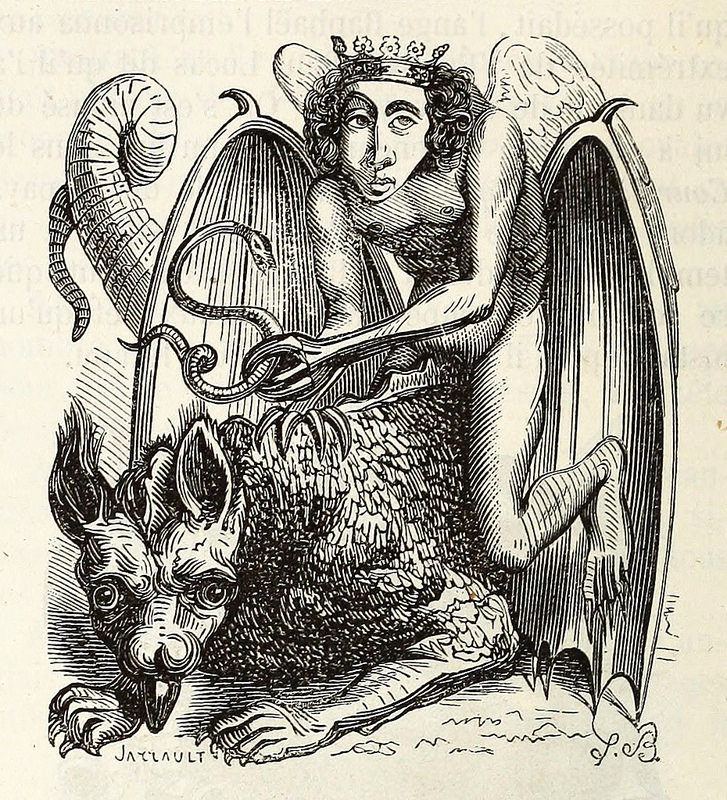 Like his uncle, Collin de Plancy was originally a partisan of liberty, equality, and fraternity, an enthused reader of Voltaire and a zealous rationalist and skeptic; also like his uncle, he would ultimately see himself reconciled to that Church he had rejected, though with a detour through the darker corners of demonology. As with the many demonic chimeras that populate his dictionary, Collin de Plancy was a mélange of disparate parts. He combined the rectilinear logic of men like Voltaire and Diderot with the chthonic visions of the symbolist and decadent poets of a generation later — Rimbaud, Baudelaire, and Verlaine, who drunkenly stomped through the rainy streets of Paris clutching their fleurs du mal. Collin de Plancy did not just convince himself that demons were real, but indeed he developed a wish to control them through language, a desire as fervent as that of his Enlightenment forebears to categorize and define words and ideas in dictionaries and encyclopedias. The demonologist was a man stuck between logic and faith, the salon and the Hellfire club, who heard the screams of horrific monsters while writing with the sober pen of a naturalist.
